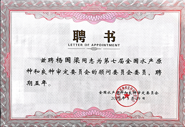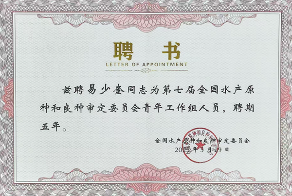 会议宣布了第七届全国水产原种和良种审定委员会委员、第七届全国水产原种和良种审定委员会顾问委员会和青年工作组组成人员名单。我校生命科学学院水产系罗氏沼虾遗传育种团队带头人、原国家虾蟹产业技术体系罗氏沼虾种质资源与品种改良岗位科学家杨国梁研究员当选为顾问委员会委员,团队骨干唐琼英研究员当选为审定委员会委员,团队青年骨干、现国家虾蟹产业技术体系罗氏沼虾种质资源与品种改良岗位科学家易少奎教授当选为青年工作组成员。
