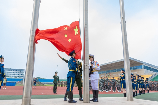 9月28日下午,我校2025级新生军训汇报表演暨总结表彰大会在东校区体育场举行。校党委书记许慧霞,校党委副书记、军训旅政委丁敢真,承训部队领导、军训旅旅长高杰中校出席大会。各学院党委(总支)书记、副书记,军训领导小组成员,军训教官、全体教导员,2025级全体参训新生参会。大会由丁敢真主持。